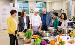 Bild 2: In der GOURMET Entwicklungsküche werden beim Besuch des WWF Österreich gesunde klimafreundliche Speisen gekocht.